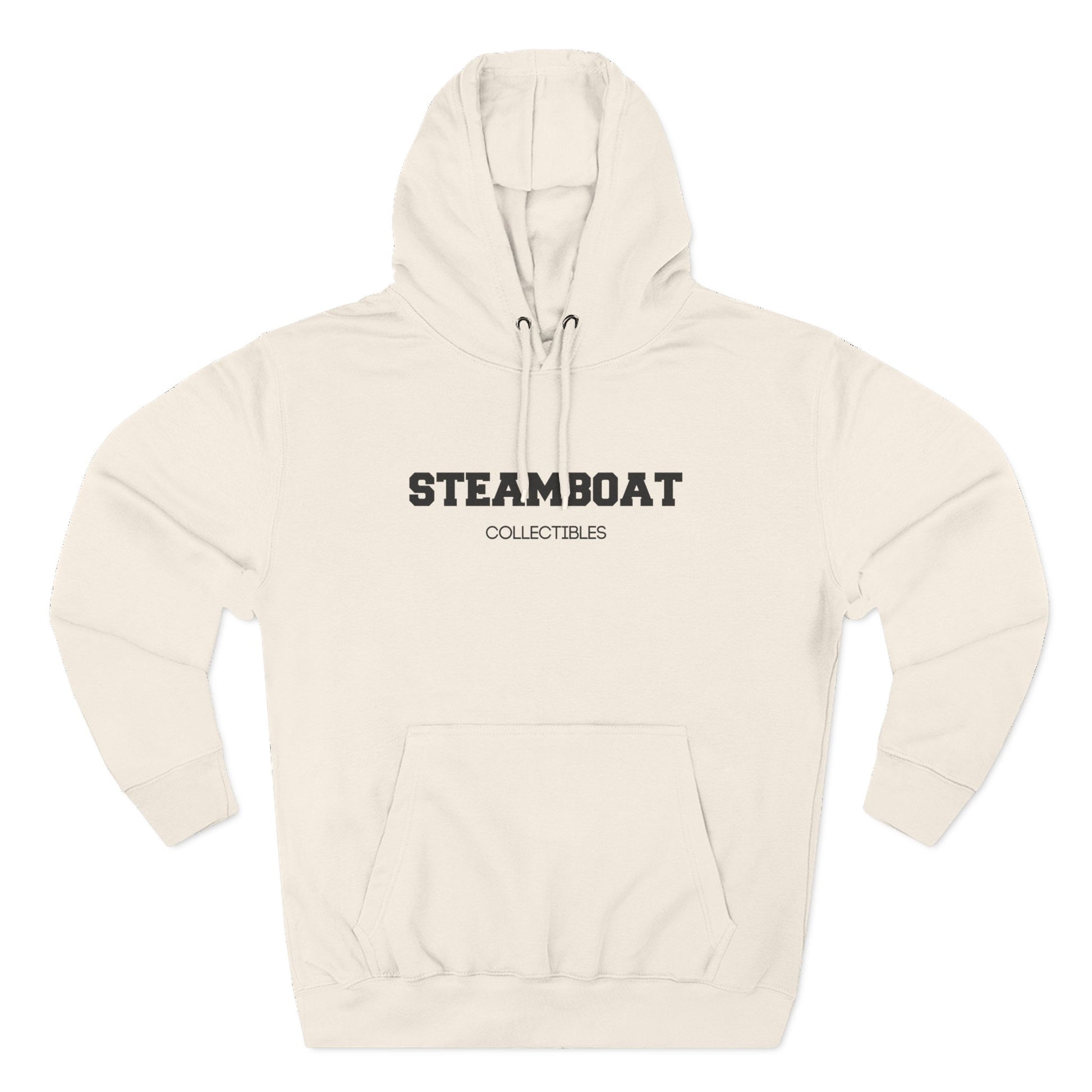 The ’26 Steamboat “Freshman” Fleece Hoodie in Sand Shell brings a warm, understated edge to a bold brand statement. Designed in a light, earthy beige with subtle creamy undertones, this colorway offers a clean, natural look that stands out without overpowering. The front features STEAMBOAT in classic Freshman font with Collectibles set just below in a refined black type, creating sharp contrast against the soft fabric. The back is finished with the full Steamboat Collectibles logo, centered and printed in black for a timeless, balanced finish.